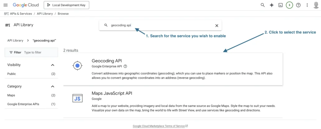 - Geocoding API – required for converting addresses into coordinates.