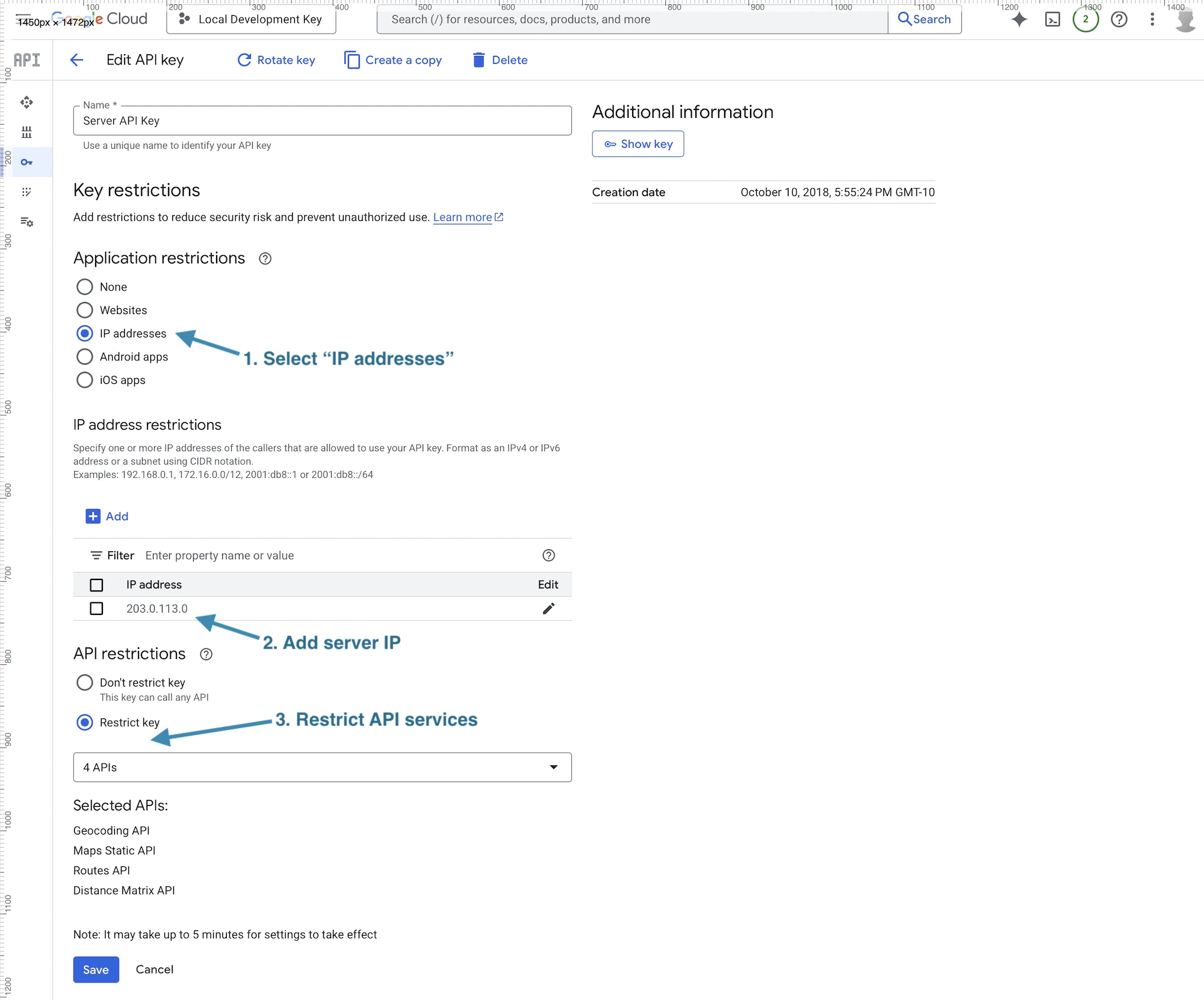 - Application Restrictions: Select IP addresses.